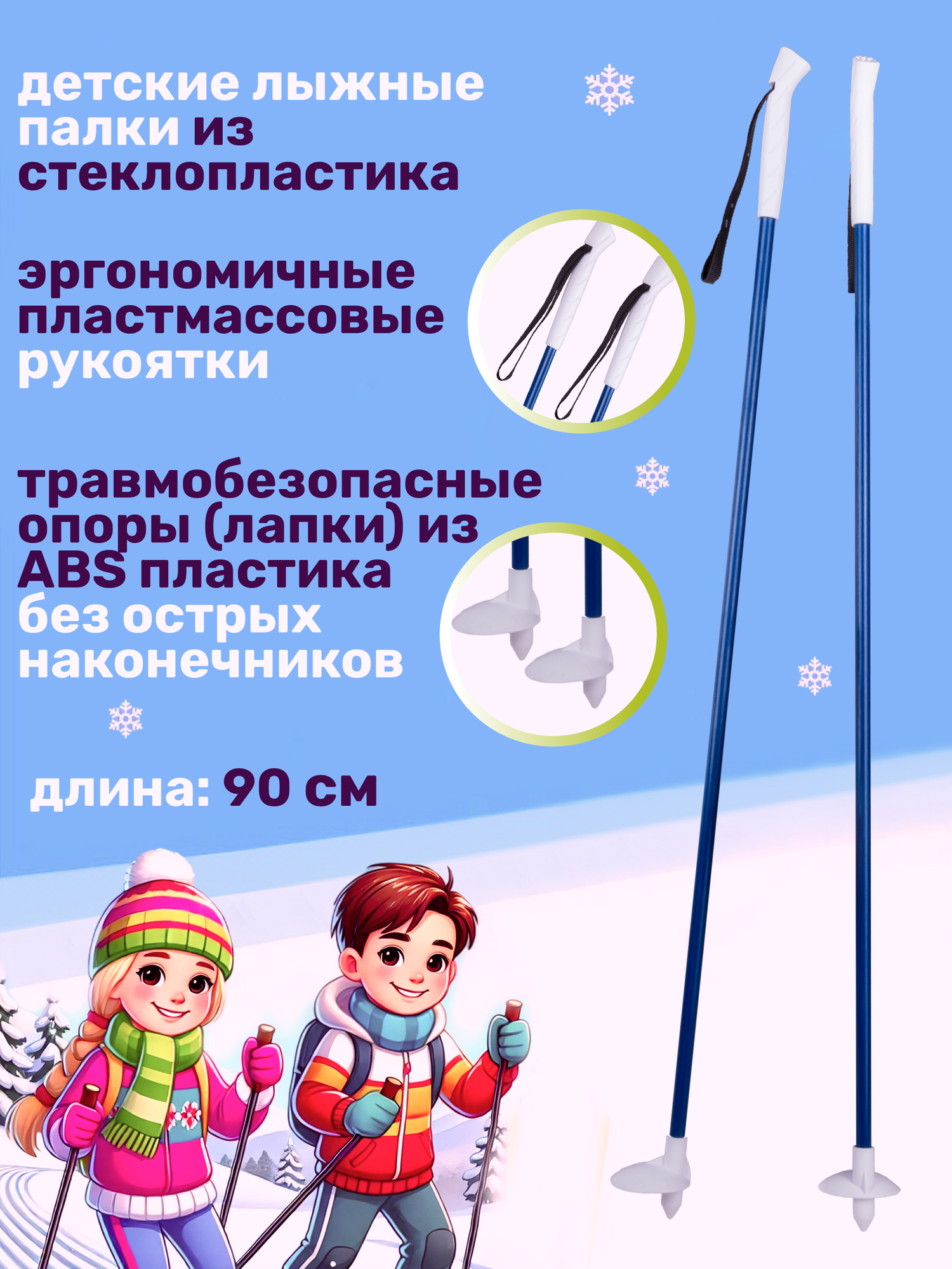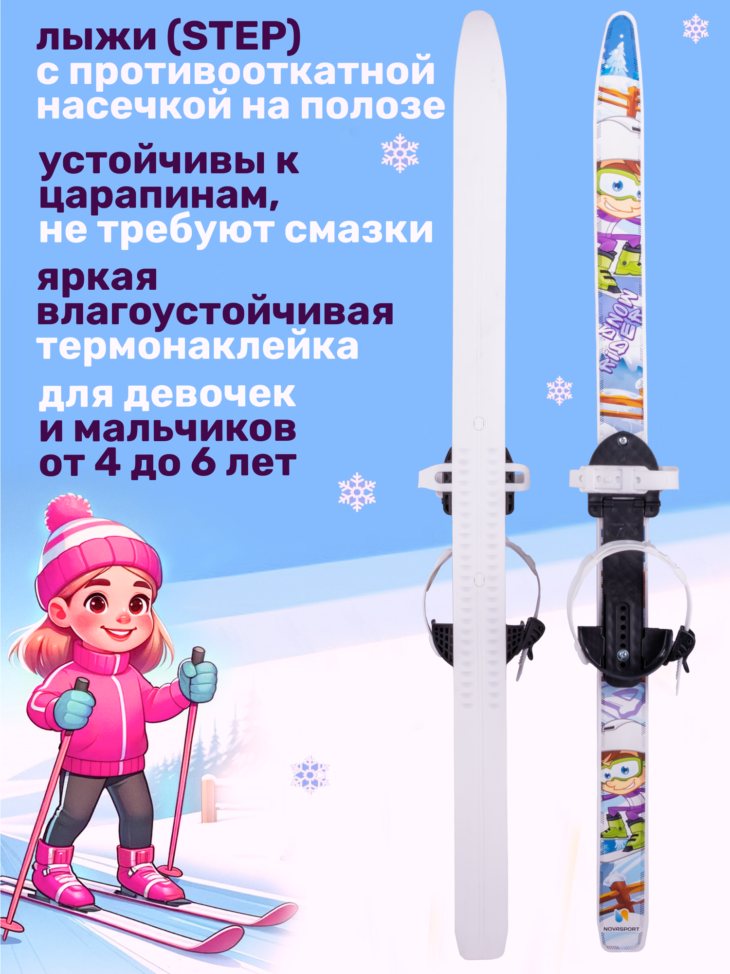 Лыжи беговые для детей 90 см с палками и креплениями / Лыжный комплект детский NovaSport Snow Rider 90 см с палками 90 см интересное: