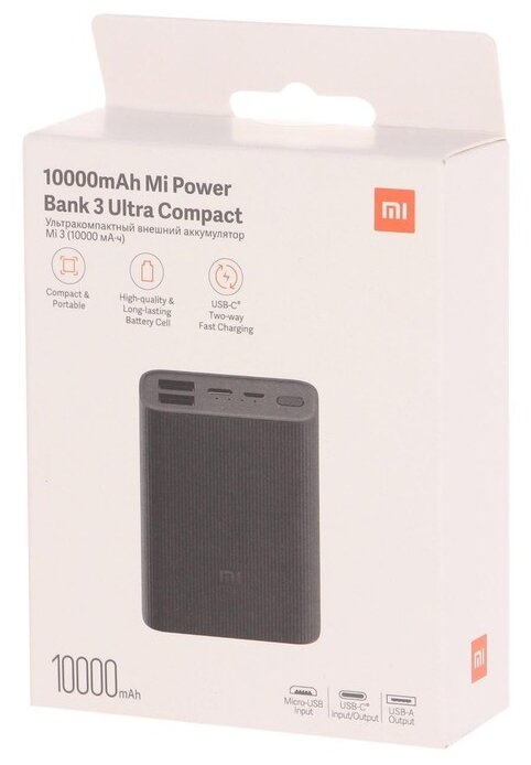 Xiaomi Mi Power Bank 3 Ultra Compact 10000 мАч, чёрный