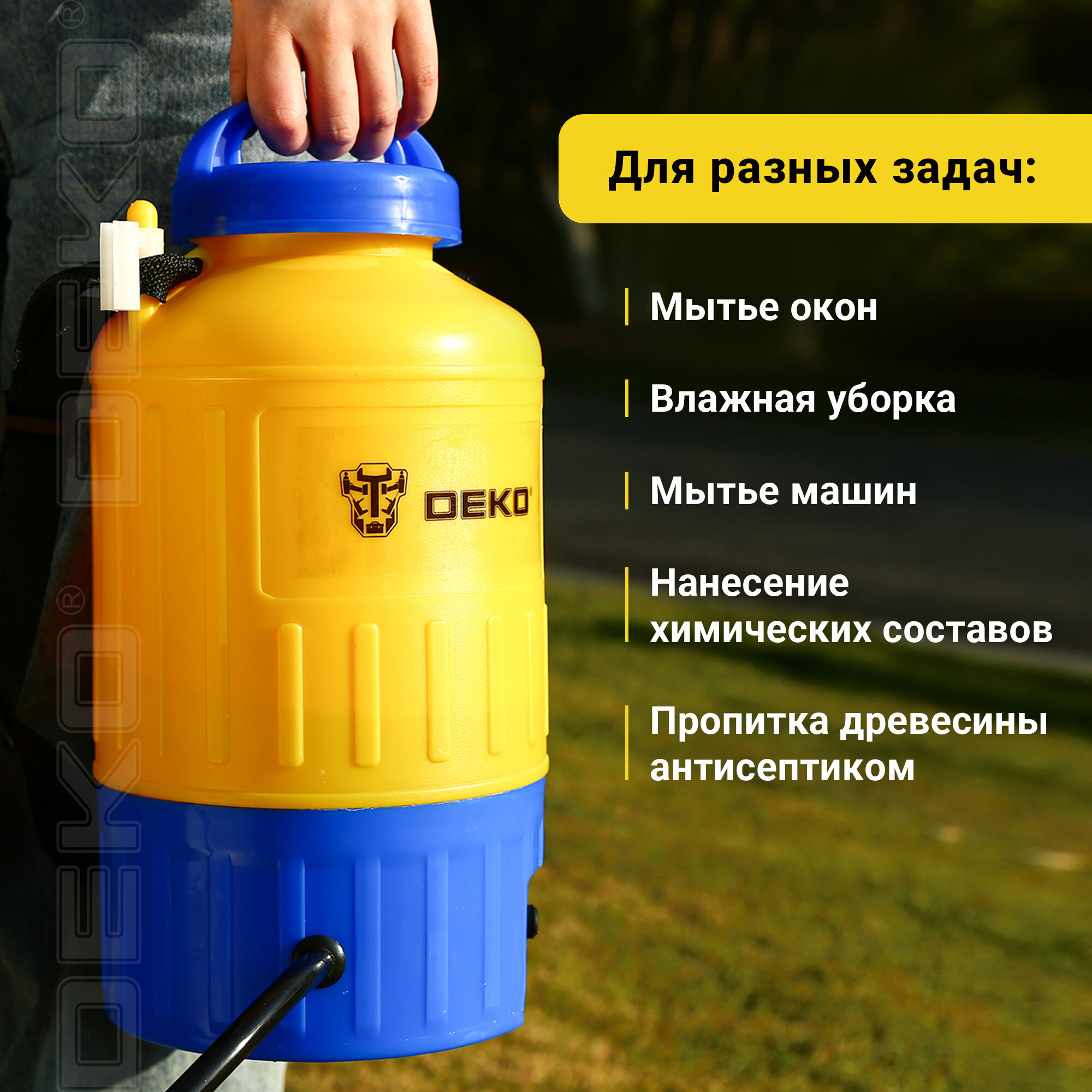 Опрыскиватель DEKO DKSP09, аккумуляторный, ручной, 5л, желтый/синий [065-0941]