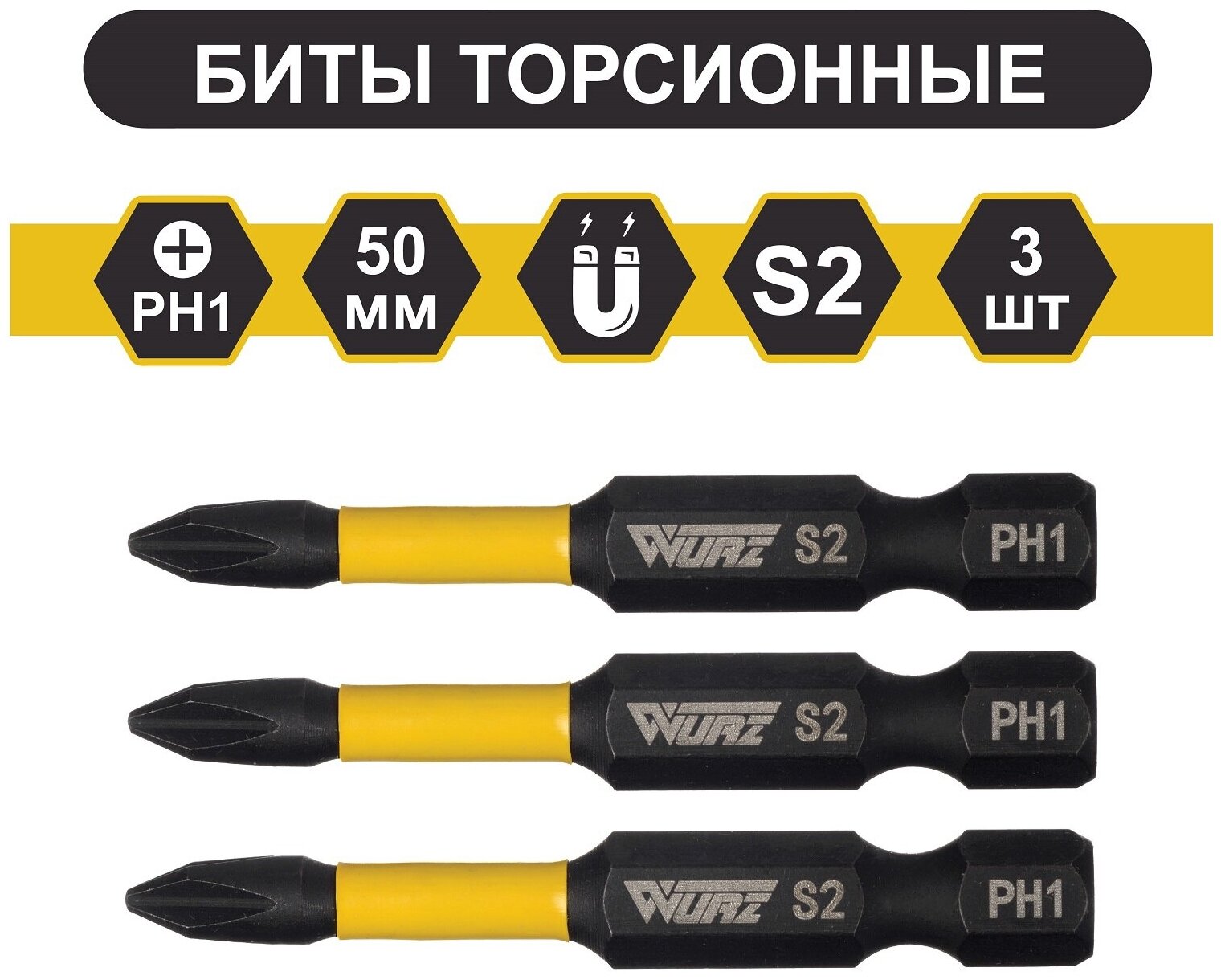 Бита WURZ торсионная намагниченная PH1 х 50мм S2 3шт. интересное: