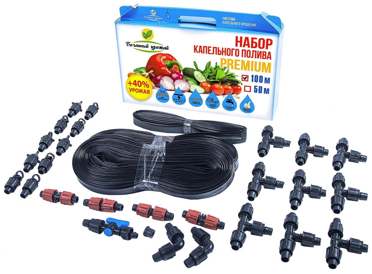 Купить Система капельного полива / Капельная лента 100 метров, шаг капельниц - 20см , набор фитингов для капельной ленты.