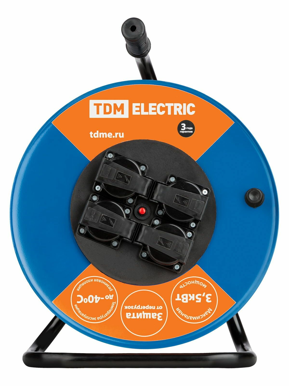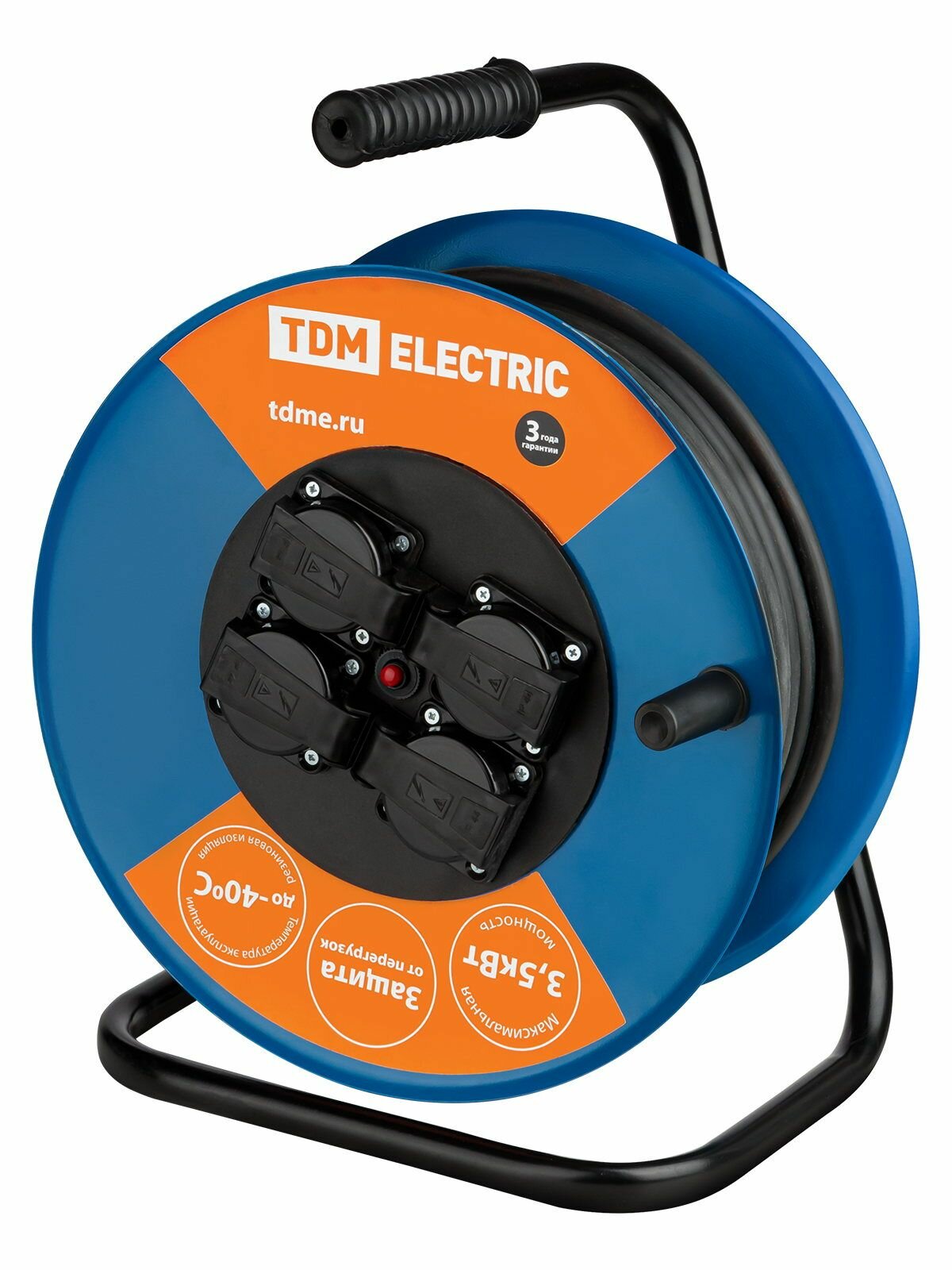 TDM SQ1301-0160 Удлинитель силовой УХз16-004 TDM (метал. катушка, А3, 4 места IP44/30м КГ 3х1,5)