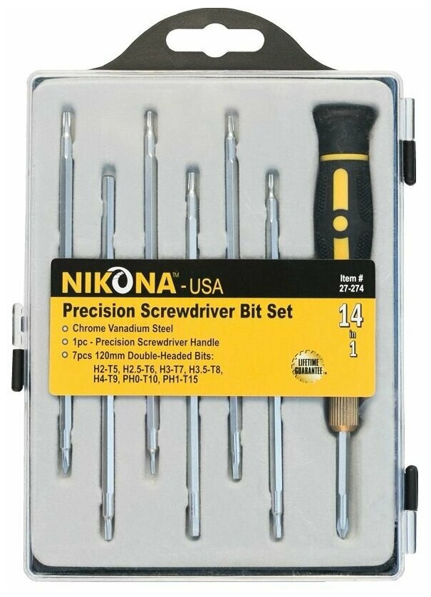 Ниже Вы можете прочитать отзывы на Отвертка для точных работ NIKONA со сменными стержнями (14-в-1) 27-274, ознакомится с подробными характеристиками, посмотреть интересные обзоры и фотографии на Отвертка для точных работ NIKONA со сменными стержнями (14-в-1) 27-274.