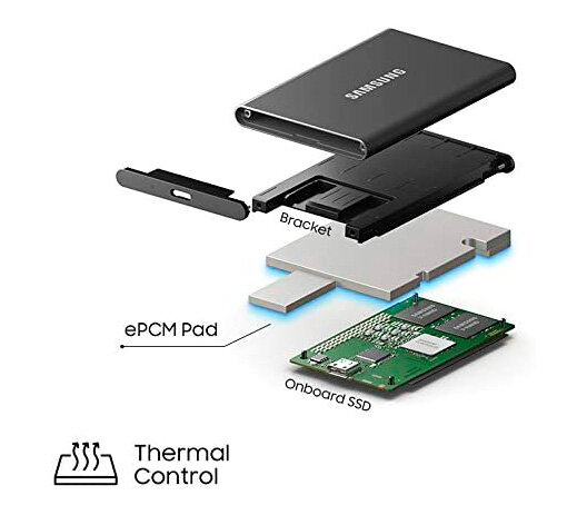 SSD диск PCI-E внешний / Samsung T7 Portable 500gb, серый / 1050/1000mbs / USB 3.2 Gen 2 Type-C / MU-PC500T/WW