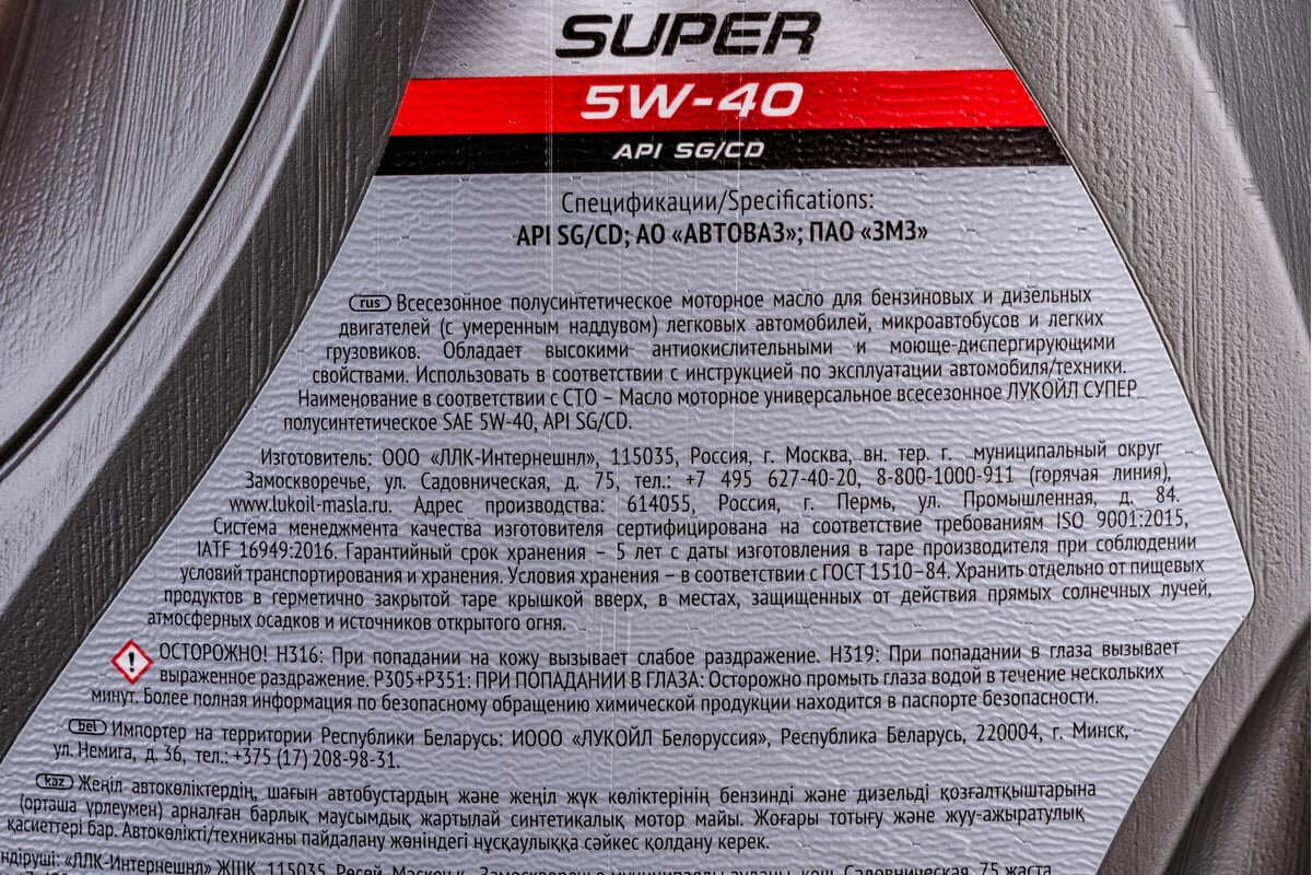 LUKOIL 1773237 Масо моторное поусинтетическое Супер 5W40 API SG/CD 60