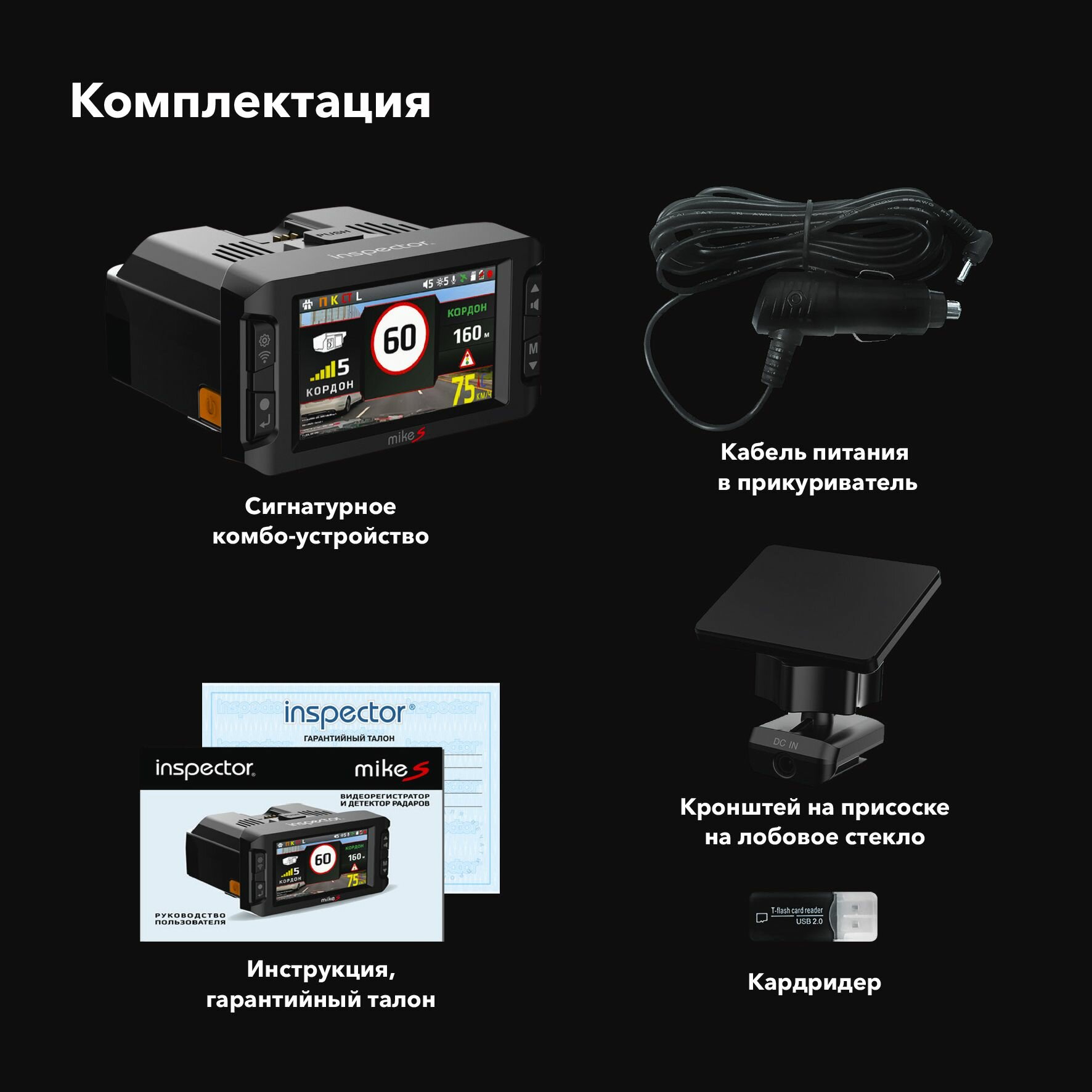 Видеорегистратор с радар-детектором Inspector Mike S, ГЛОНАСС, черный