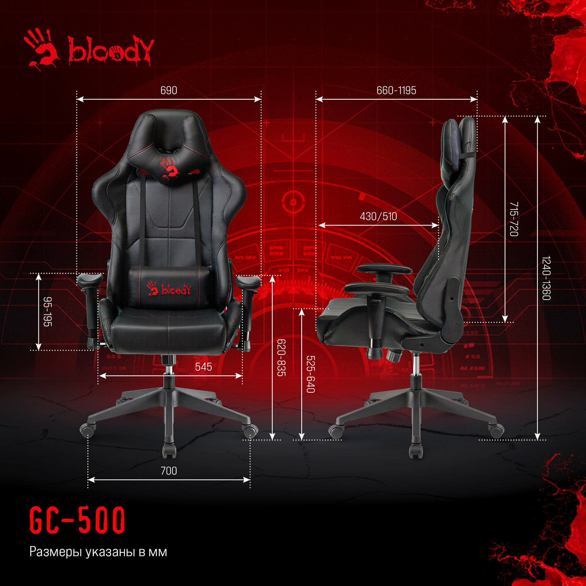 Кресло игровое A4Tech Bloody Gc-500, черный, эко.кожа, крестовина пластик