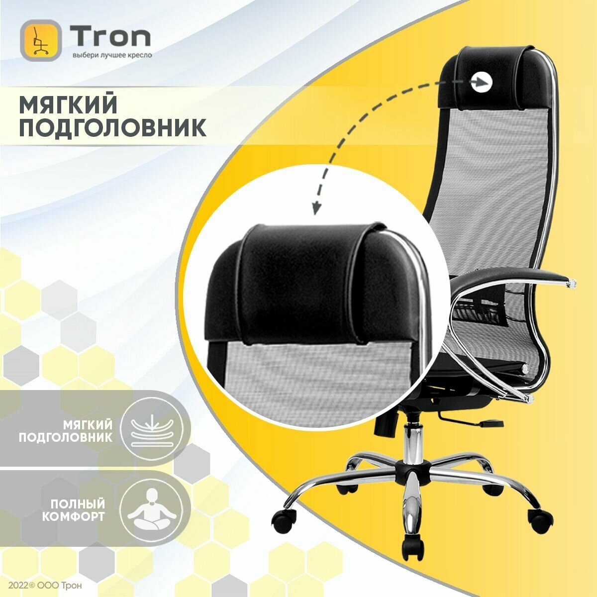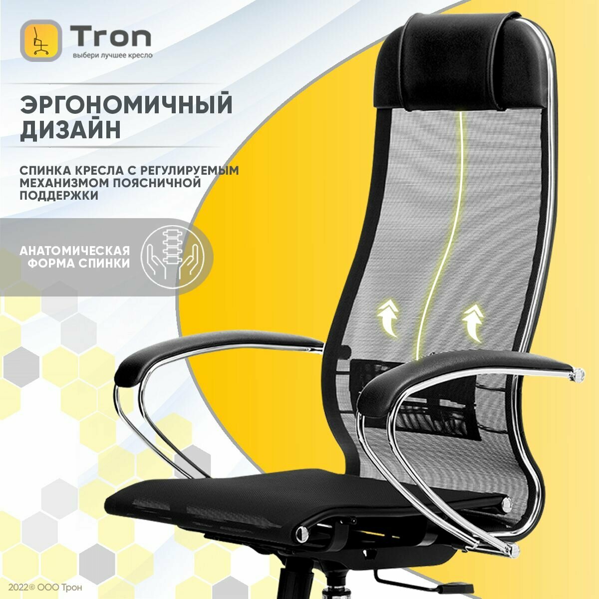Кресло руководителя Метта Комплект 4, CH, сетка черная, черная, топ-ган 101, 003 (z308963578)