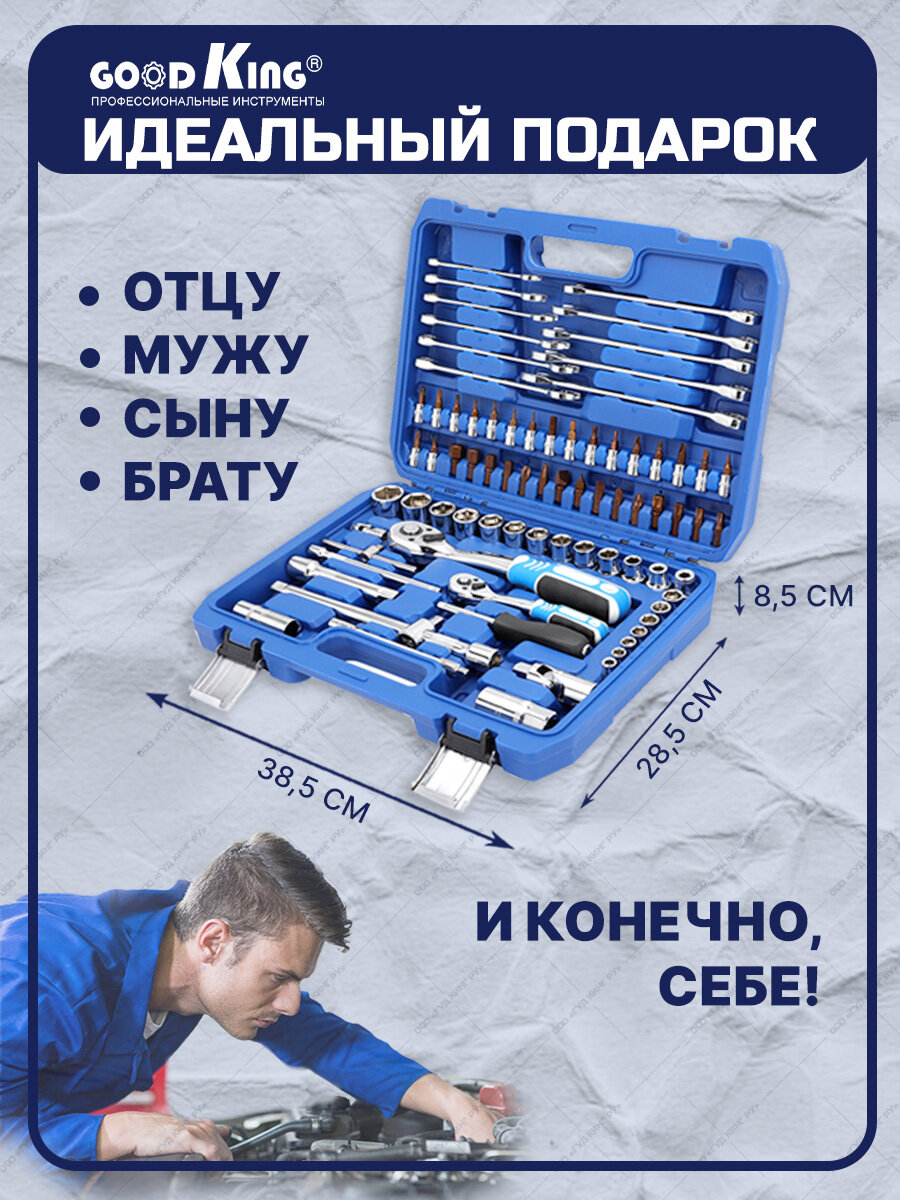 Набор инструментов для авто GOODKING 78 предметов, 1/4 1/2, трещотка 72 зуба B-10078