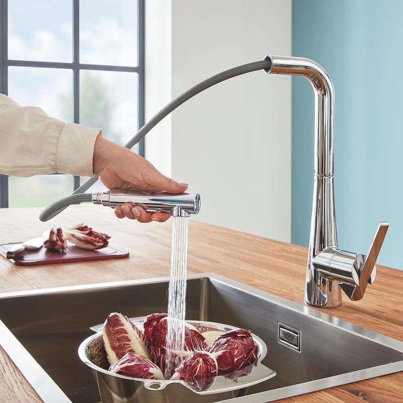 Смеситель для кухни Grohe Zedra с выдвижным L-образным изливом, Dual, суперсталь 32553DC2