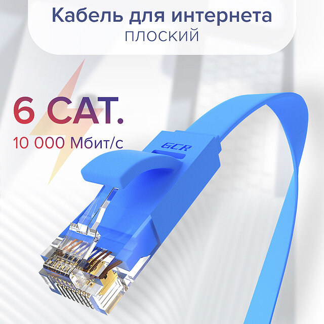 Кабель для интернета GCR PROF плоский UTP cat.6 10 Гбит/с RJ45 LAN медный контакты 24K GOLD (GCR-LNC62) синий 3.0м