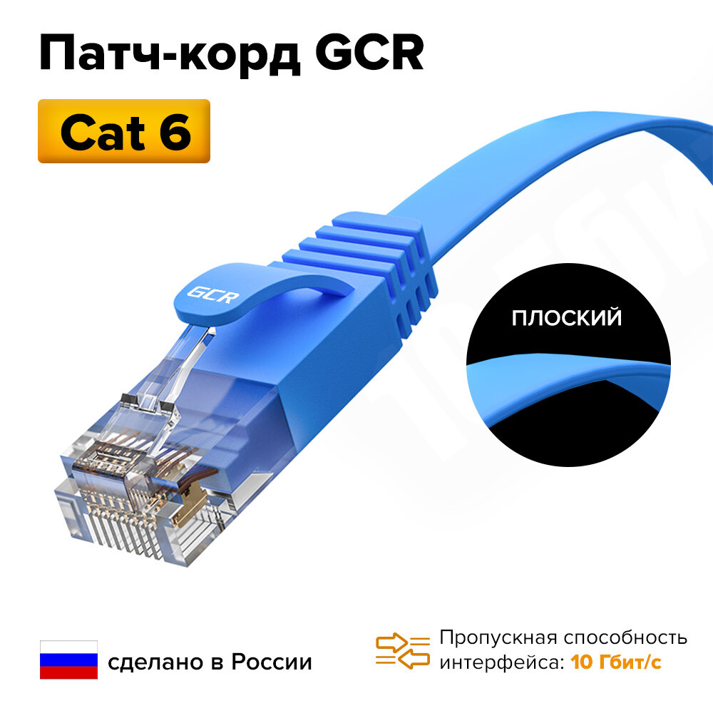 GCR Патч-корд Prof плоский прямой 7.5m, UTP медь кат.6, синий, 30 Awg, ethernet high speed 10 Гбит/с