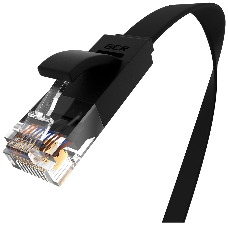 Патч-корд GCR PROF плоский UTP cat.6 10 Гбит/с RJ45 LAN контакты 24K GOLD (GCR-LNC62) черный 1.0м