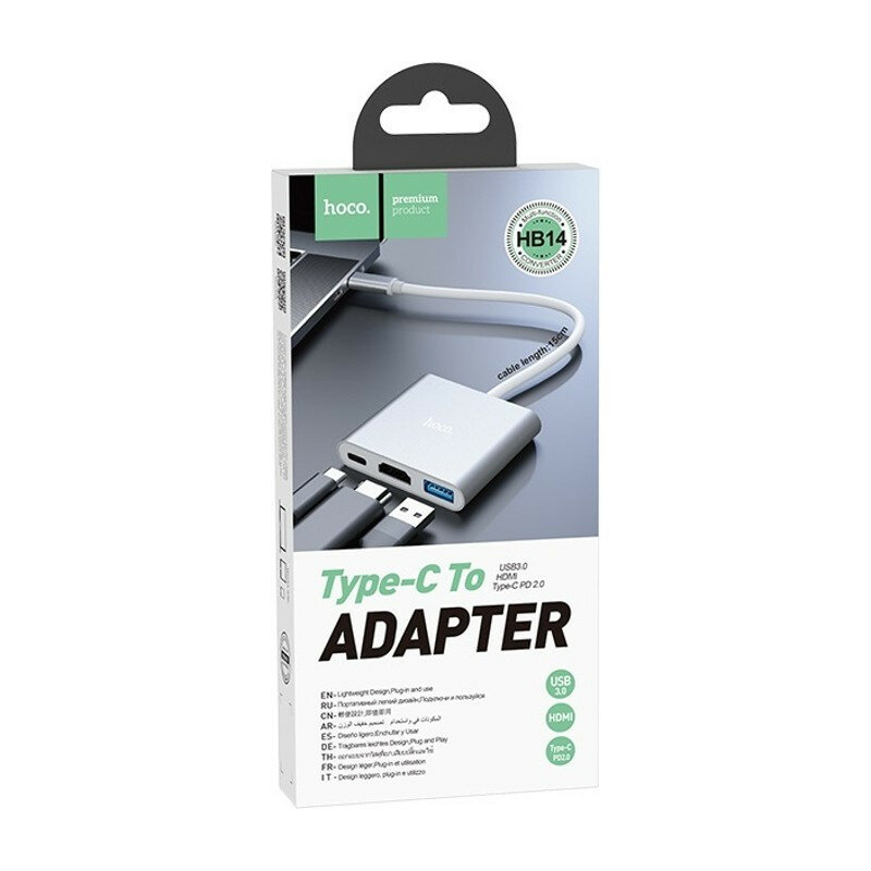 Адаптер Hoco (HB14) USB-C 3 в 1 на USB 3.0/HDMI/PD (Silver)