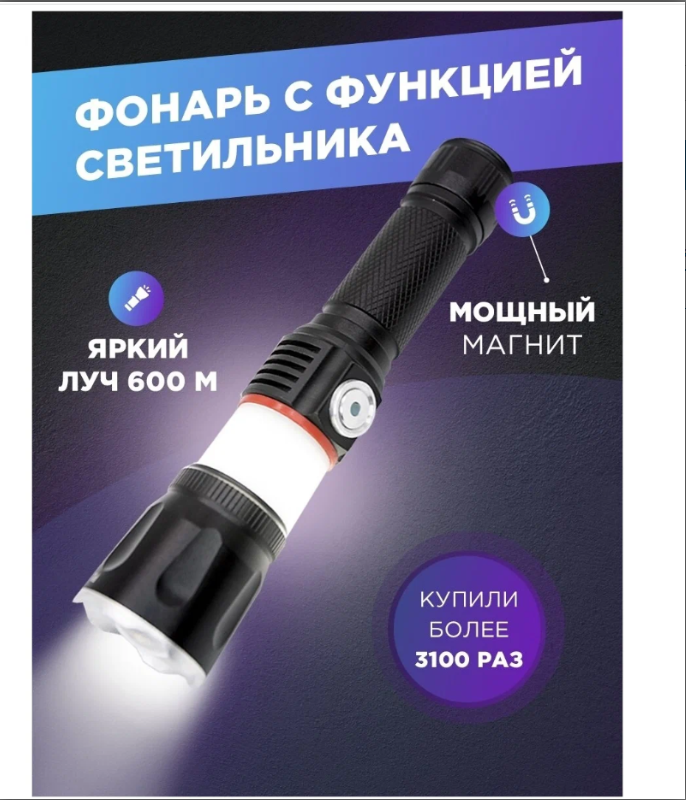 Фонарь мощный аккумуляторный светодиодный с функцией светильника и магнитом на торце (X- balog) интересное: