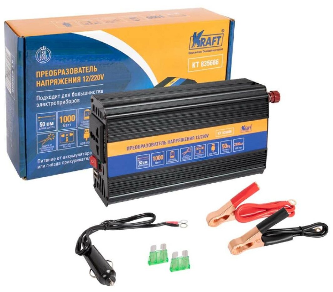 Автомобильный инвертор KRAFT 12/220 В, 1000 Вт KT 835666