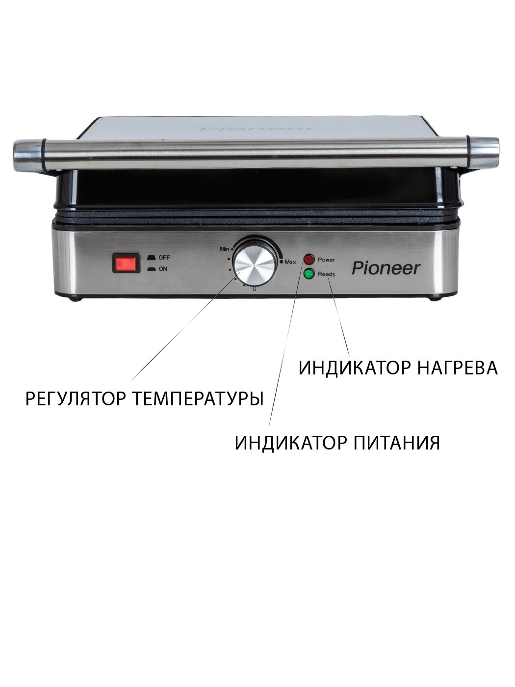 Гриль Pioneer GR1002E 2000Вт; серебристый металлик, механическое управление.