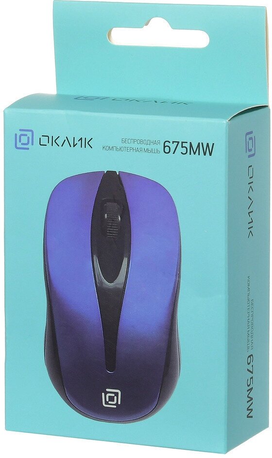 Мышь Oklick 675MW, оптическая, беспроводная, Usb, черный и синий [1025918] .