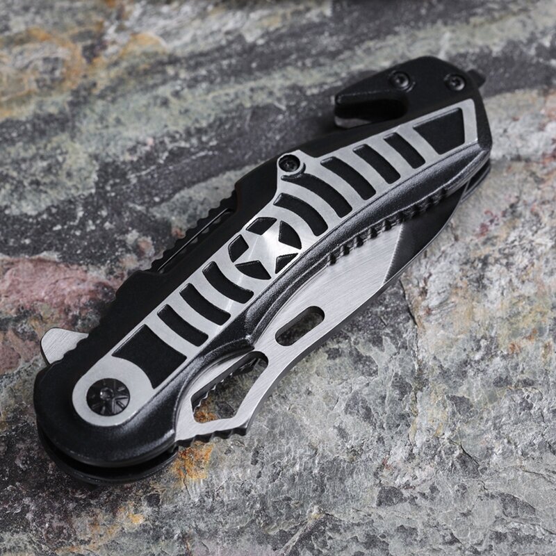 Полуавтоматический складной нож из нержавеющей стали (3 в 1) + стеклобой, стропорез, зажим к ремню