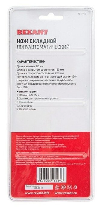 Полуавтоматический складной нож REXANT (12-4914-2)