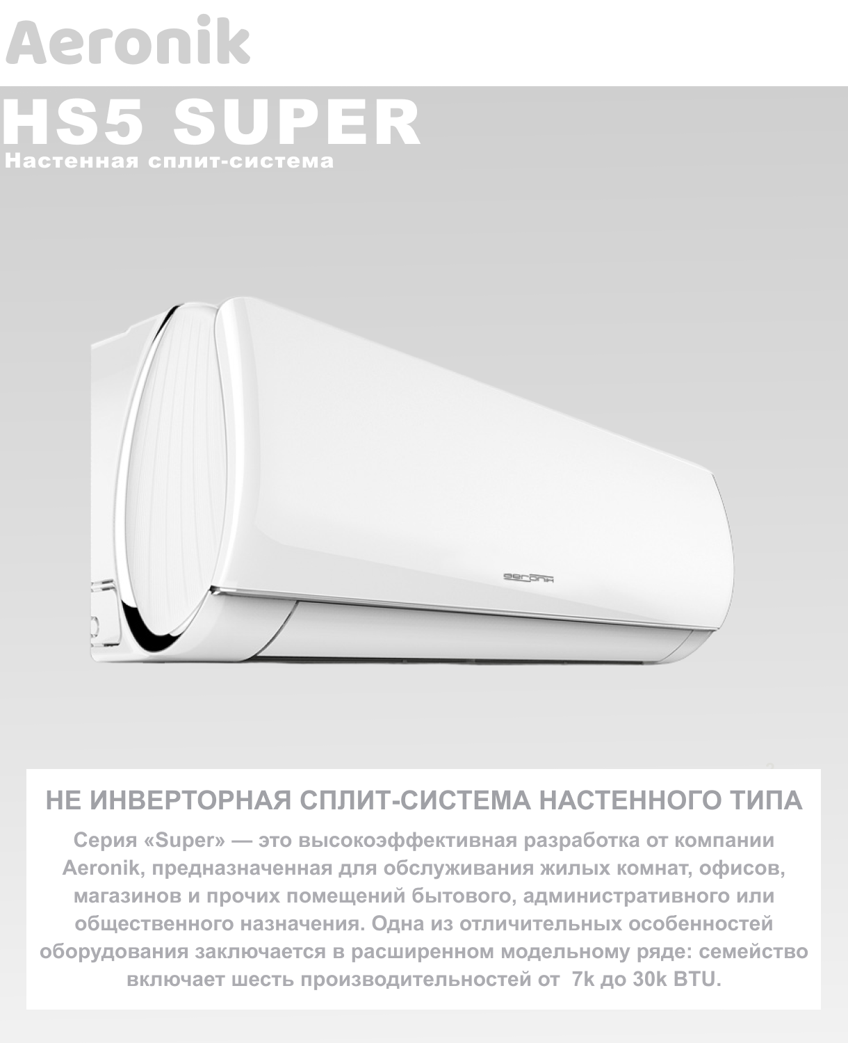 Настенная сплит-система On/Off Aeronik Сплит AERONIK ASI-07HS5/ASO-07HS5 Серия ( HS5)