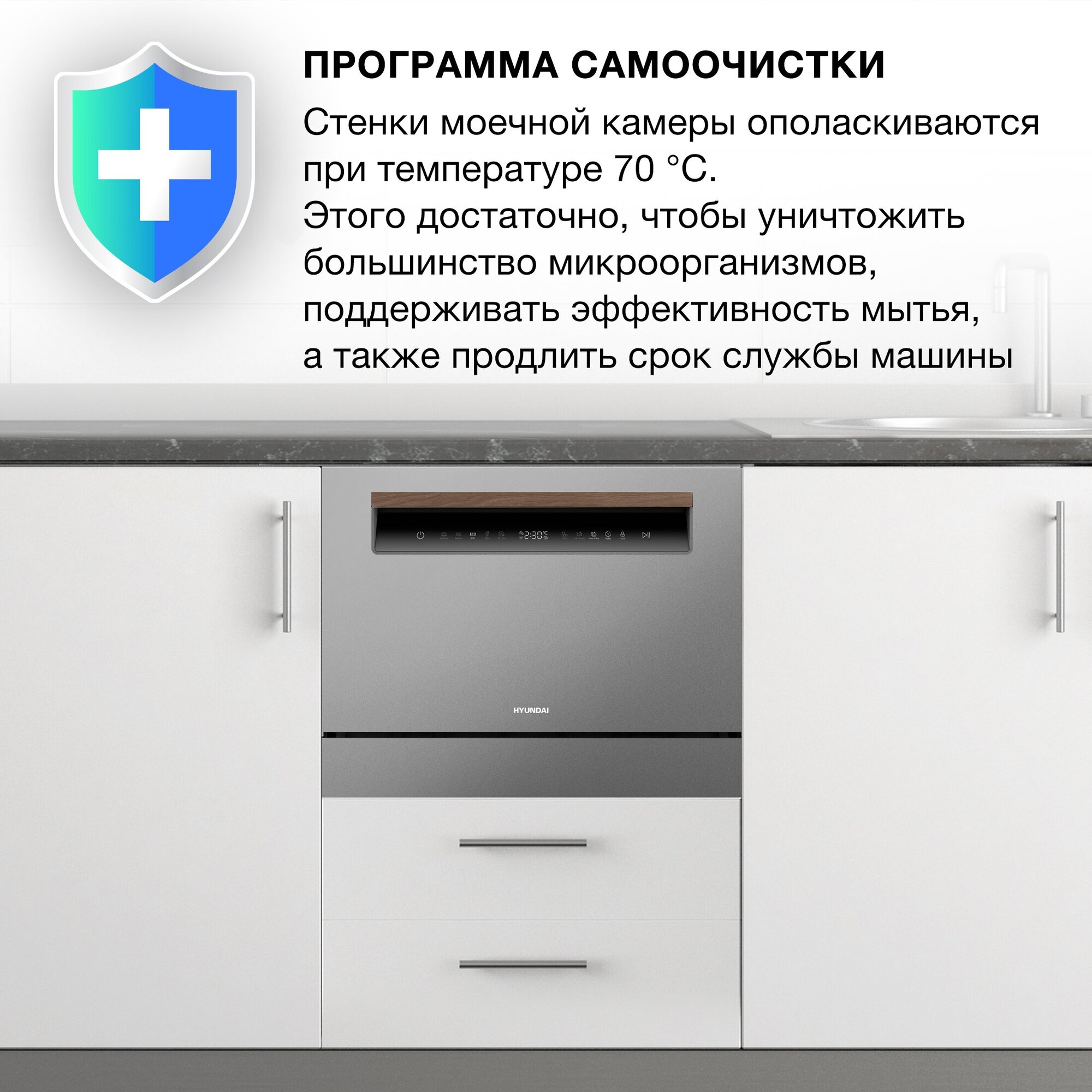 Посудомоечная машина Hyundai DT303, компактная, настольная, 55см, загрузка 6 комплектов, серебристая [dt303 серебристый]