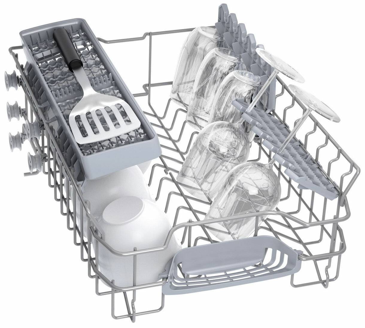 | Плюсы: | стандартный дизайн посудомоек бош с 3мя уровнями разбрызгивателей. |