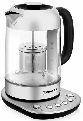 Чайник с терморегулятором и заварником BRAYER BR1028, 1,7 л, 2200 Вт, закрытый нагревательный элемент, стекло интересное: