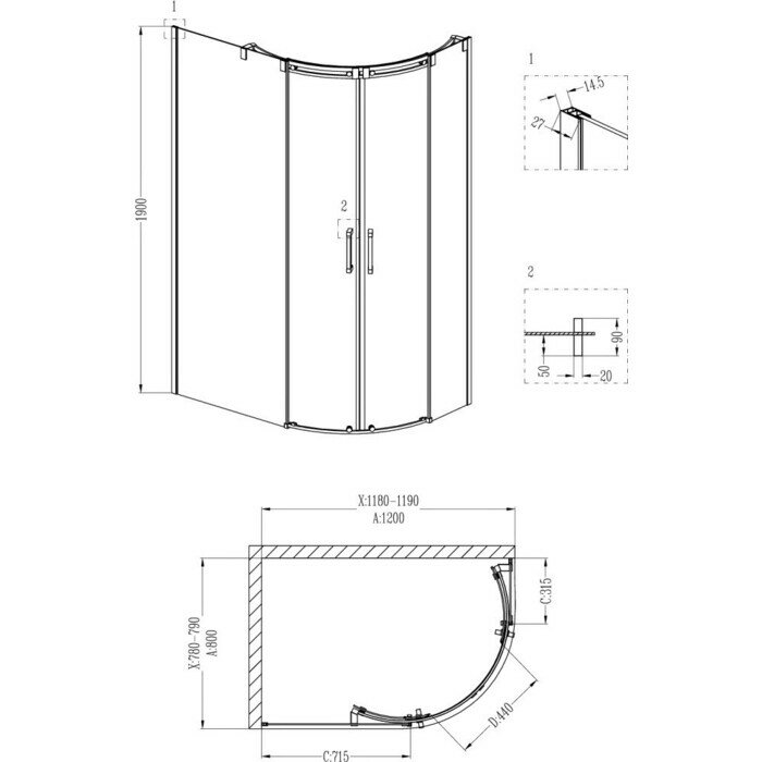 | Высота поддона | 190 cм |