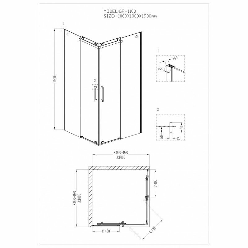 Душевой уголок Grossman GR-1100 100х100х190 см без гидромассажа, без крыши