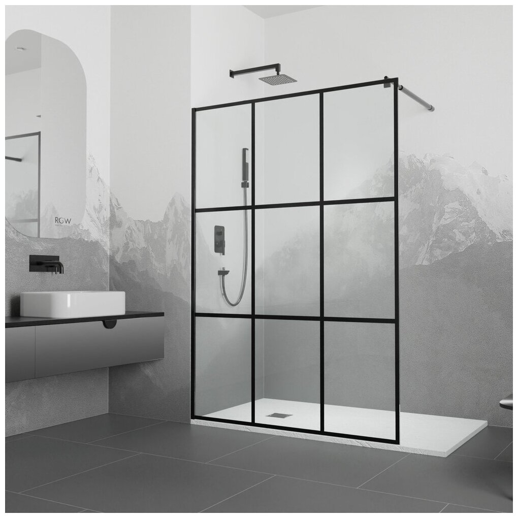 Душевая перегородка RGW 120х195 см WA-111 B Чёрный, Прозрачное, Принт, 8 мм Easy Clean (411011112-84)