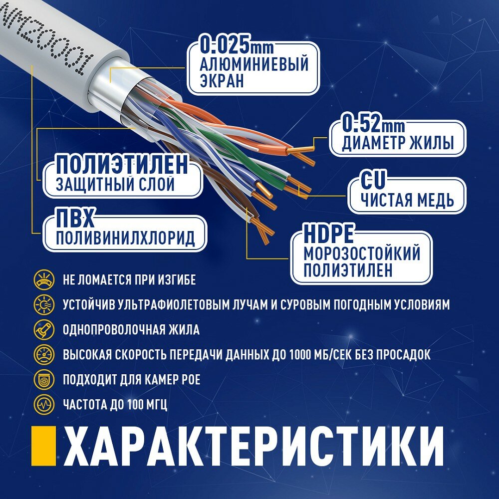 Кабель ftp cat.5e 4 пары neomax 20001 (305м) экранированный
