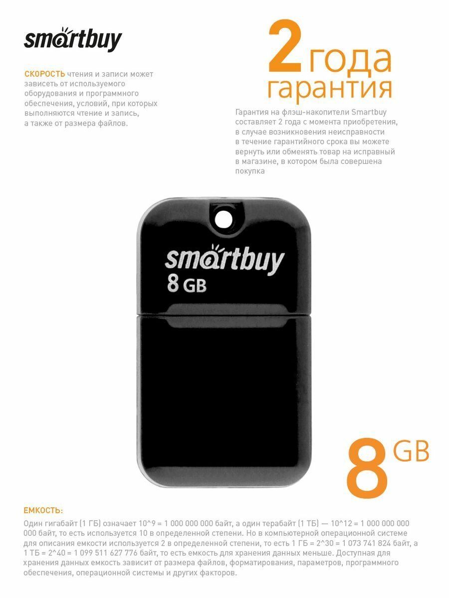 Внешний накопитель 8Gb USB Drive SmartBuy ART Black (SB8GBAK)