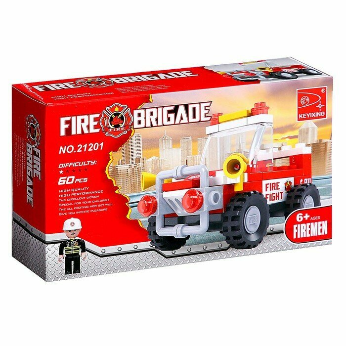 Конструктор Пожарная бригада "Джип", 58 деталей