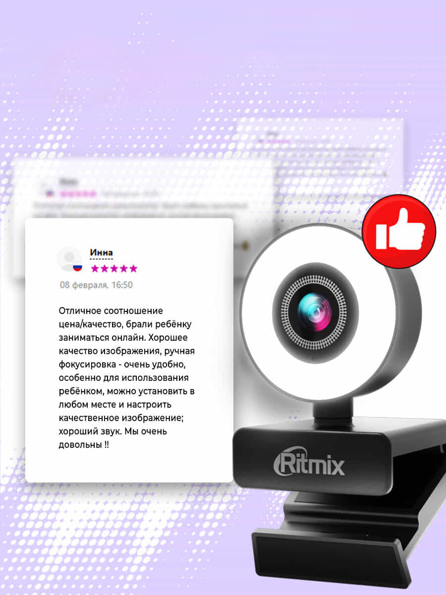 Вебкамера RITMIX RVC-250 со встроенной светодиодной подсветкой интересное: