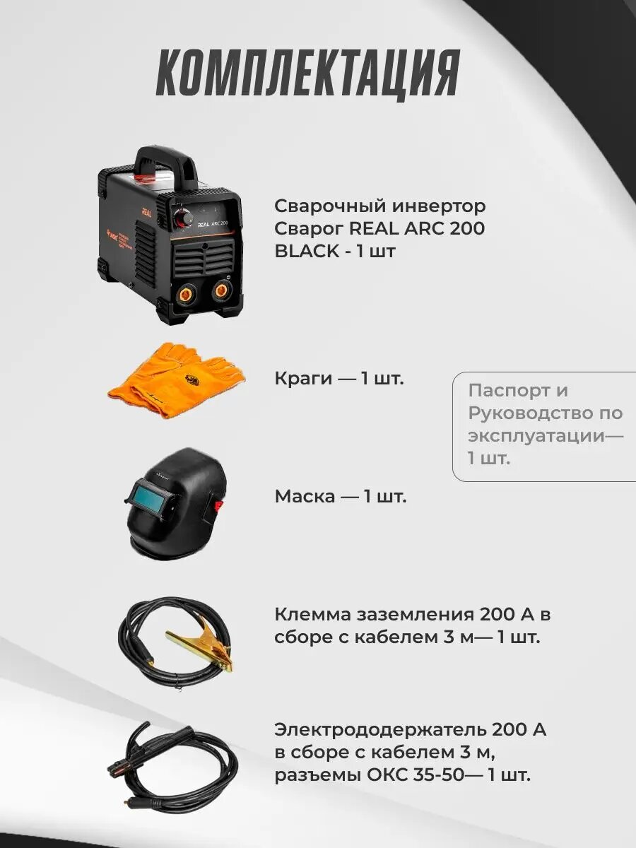 Инвертор сварочный ARC 200 "REAL" (Z238N) Black (маска+краги) интересное: