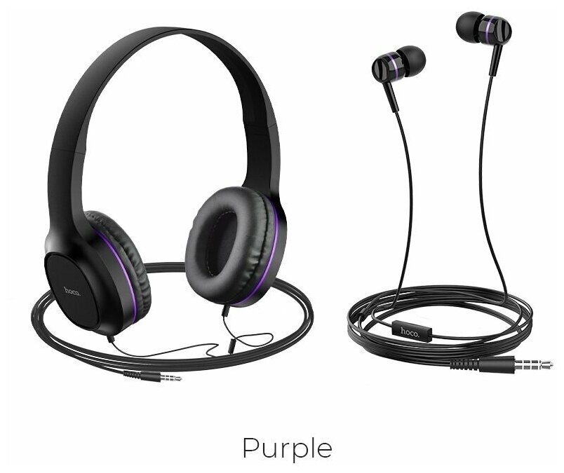 Наушники hoco W24 полноразмерные + вакуумные/ проводные/ фиолетовые / с микрофон интересное: