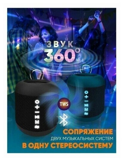 Портативная колонка TFN Quadro, 3Вт, Bluetooth 5.0, microSD, microUSB, IPX6, 1500мАч, черная