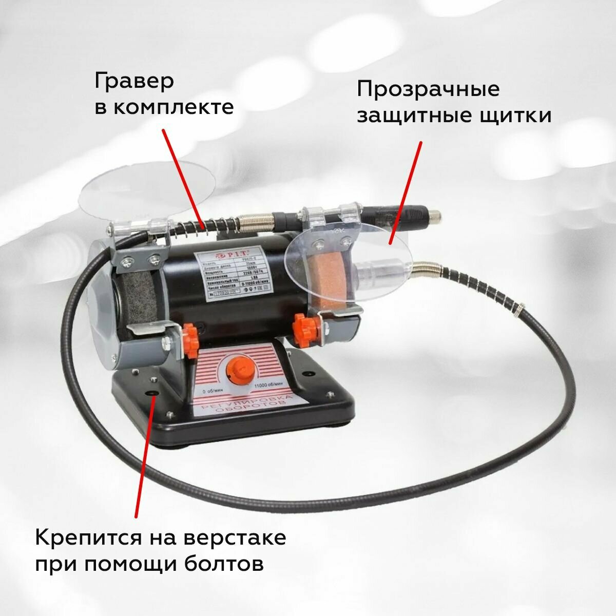 Станок-точило заточной 75х20х10мм 160Втч с гравером на гибком вале 11000об/мин PIT мастер PBG 75-C,