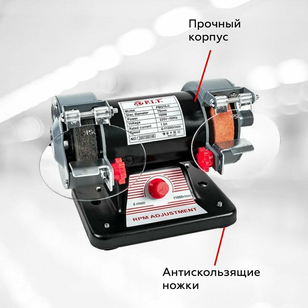Точильный станок для ножей электрический P.I.T. PBG75-C мастер 160 Вт, 11000 об/мин, круг - 75 мм х 17 мм
