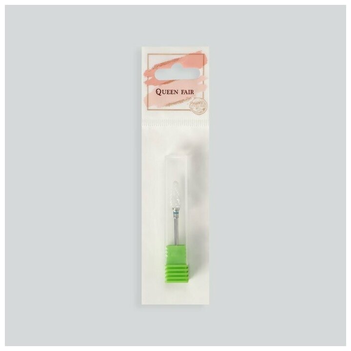 Queen fair Фреза керамическая для маникюра «Кукуруза», крупная нарезка, 6 × 15 мм, в пластиковом футляре, цвет белый