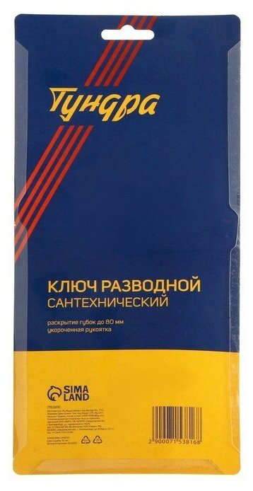 Тундра Ключ разводной сантехнический тундра, укороченная рукоятка, раскрытие губок до 80 мм, 225 мм интересное: