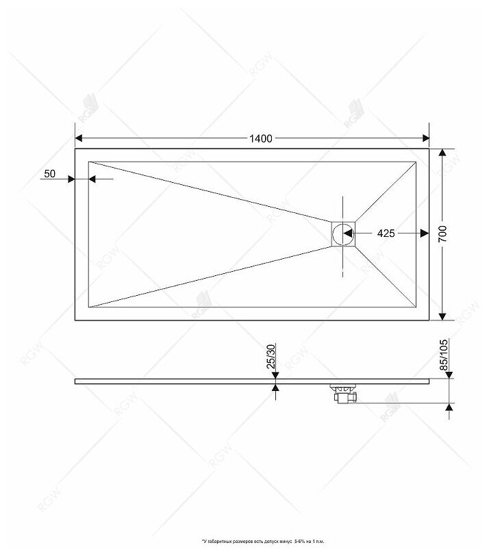 RGW Душевой поддон прямоугольный RGW ST-W (700x1400)