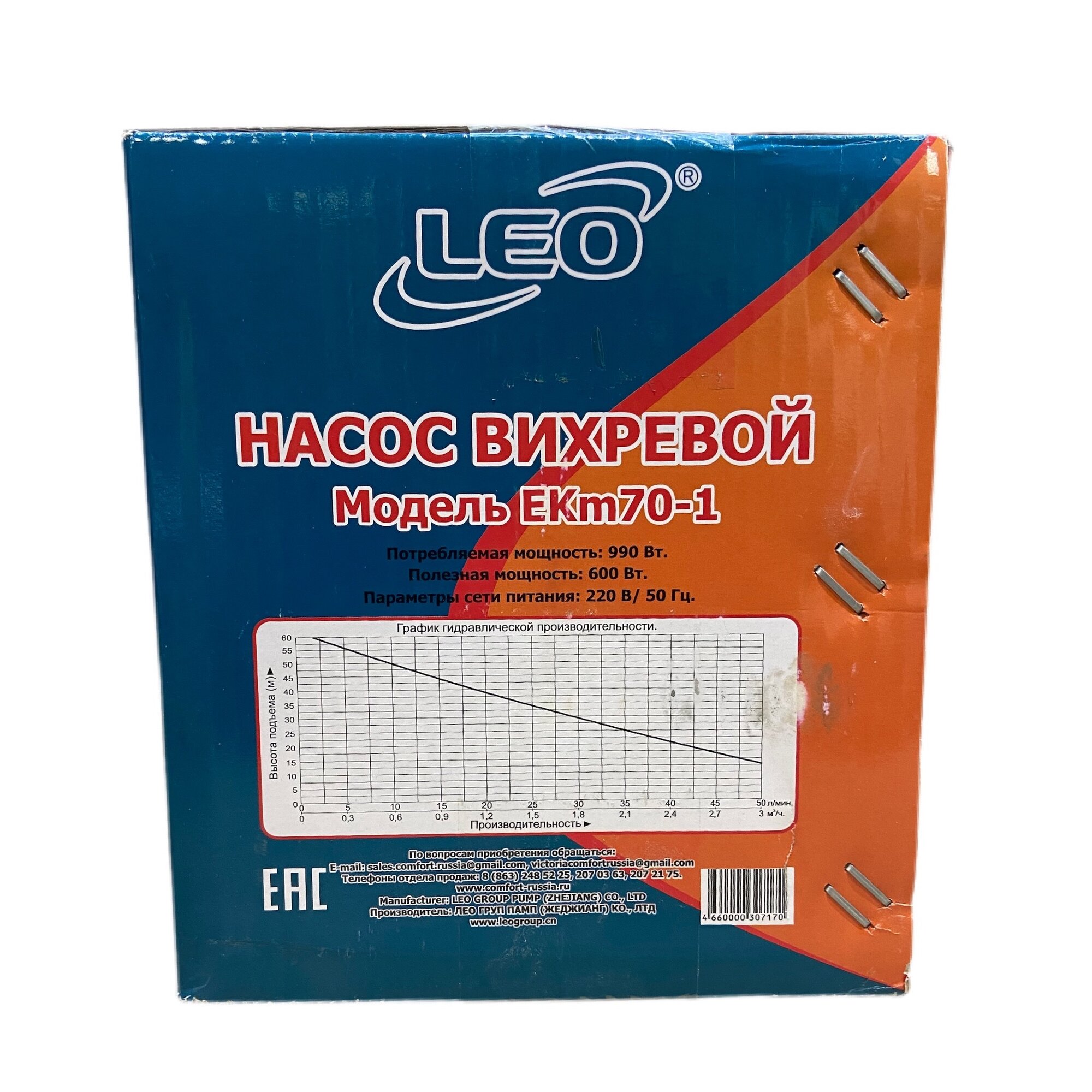 Насос поверхн. вихревой "LEO" EKm 70-1, (600Вт, 50л/мин, 60м)
