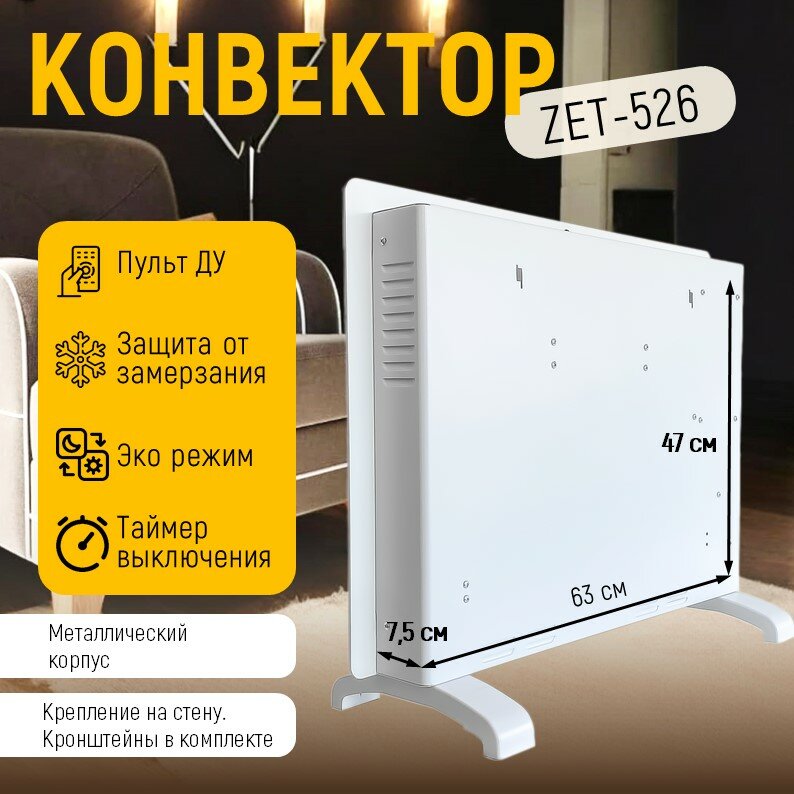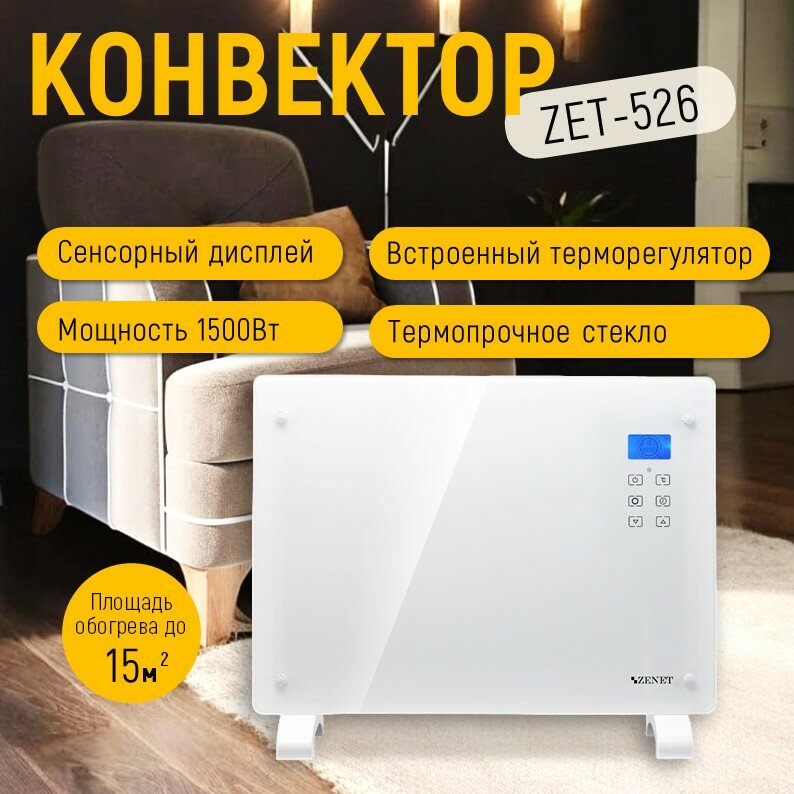 Конвектор ZENET ZET-526, 1500Вт, с терморегулятором, белый