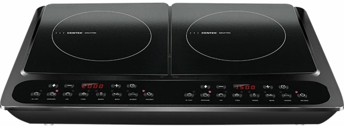 Плитка индукционная Centek CT-1514 Black <3500Вт> 2 конфорки, 8 наст мощ-ти, 7 программ, таймер, LED
