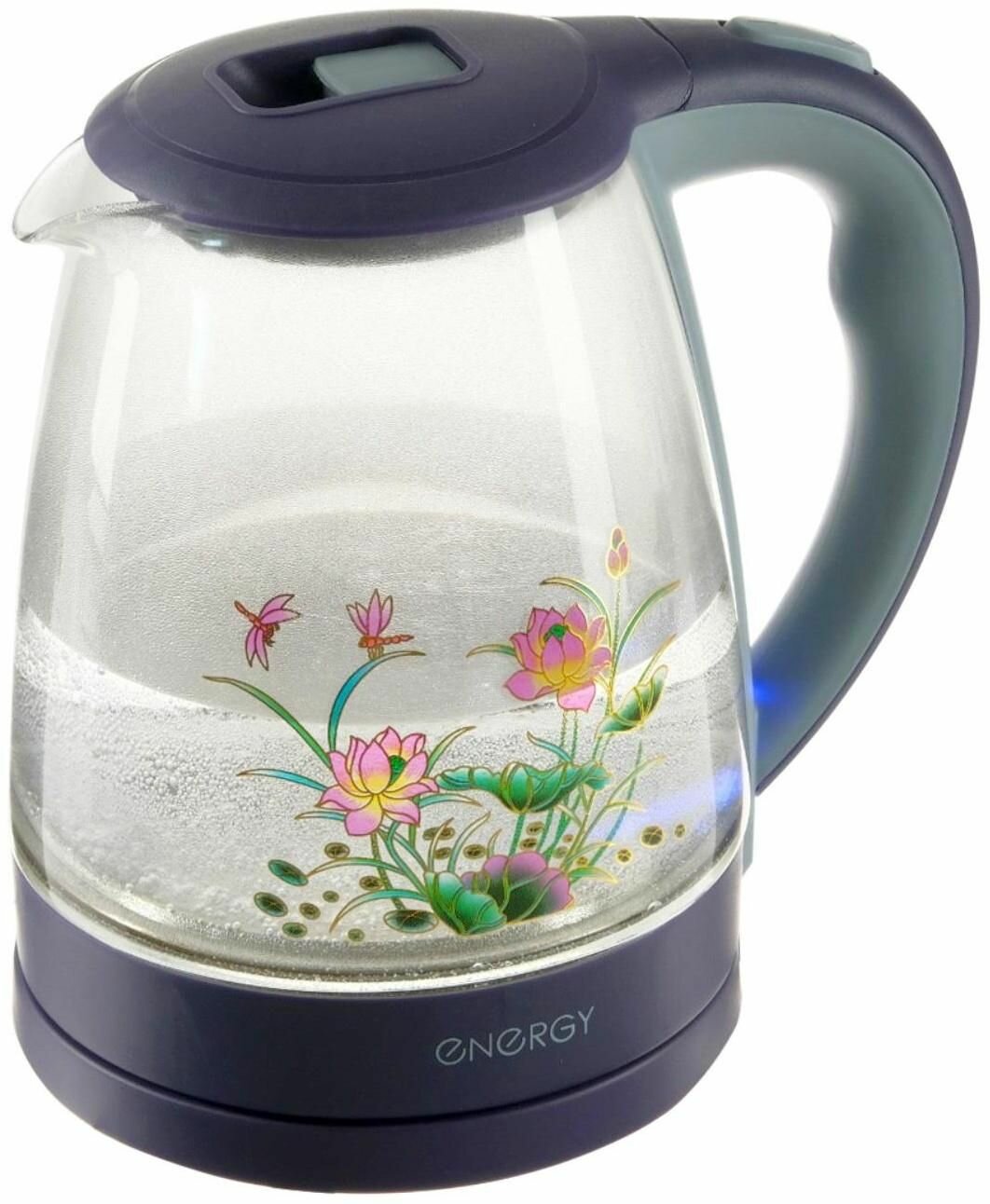Чайник электрический ENERGY E-287, стекло, 2 л, 1500 Вт, подсветка, синий Energy 4964441 .