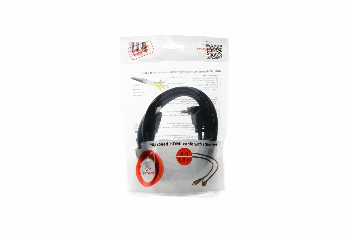 Кабель Cablexpert HDMI v1.4, 19M/19M, 1.8м, угловой разъем, черный CC-HDMI490-6