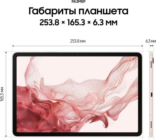 Планшет Samsung Galaxy Tab S8, 8 ГБ/128 ГБ, Wi-Fi, со стилусом, розовое золото