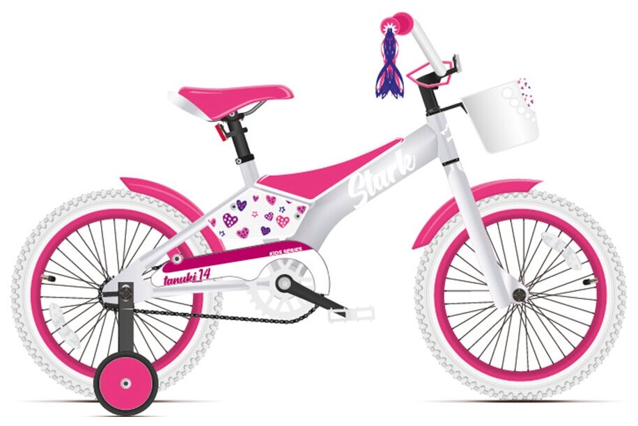 Детский велосипед Stark Tanuki 14 Girl, год 2021, цвет Белый-Розовый